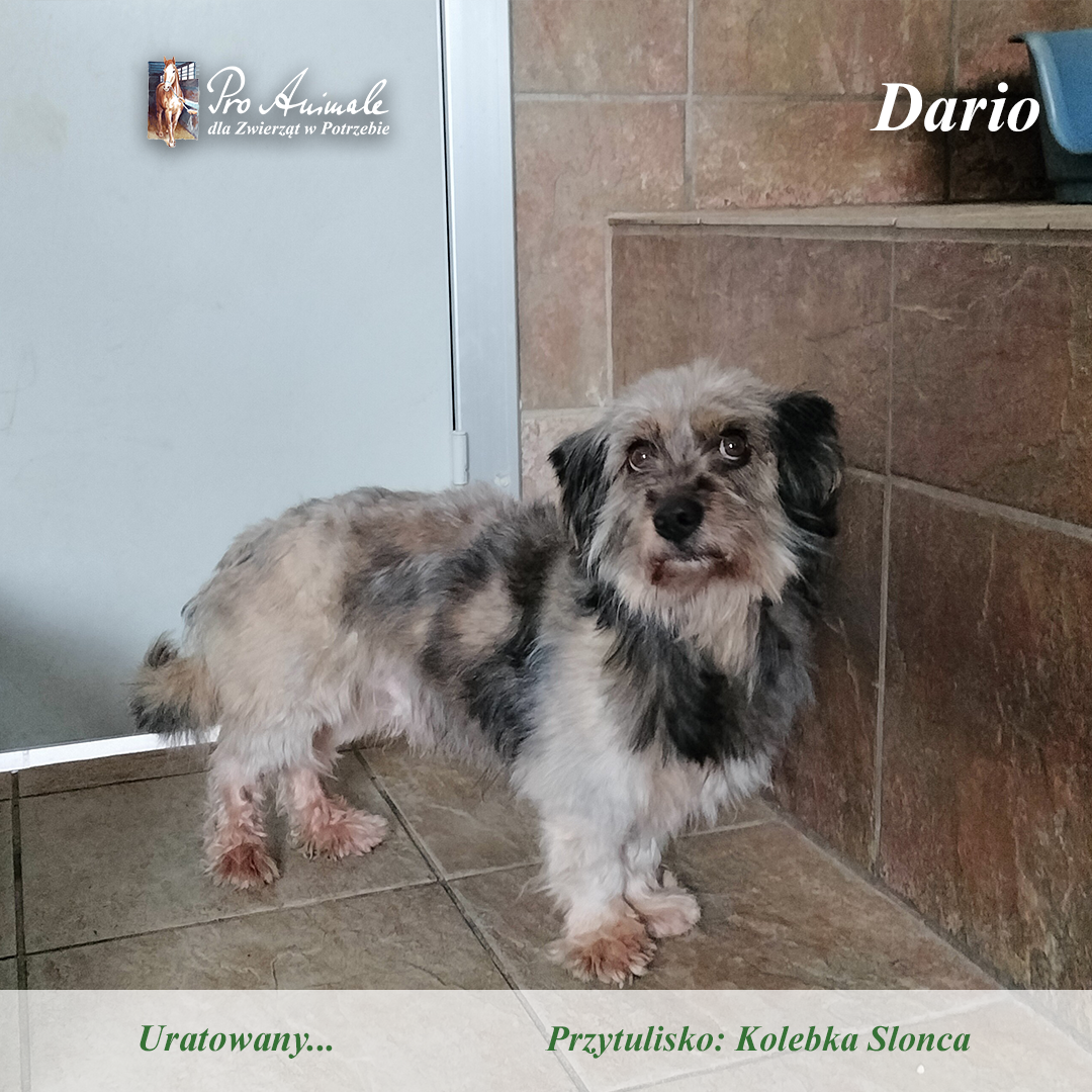 Dario (4 lata) z Gorzycy został bezlitośnie porzucony na brzegu Odry. Przez tygodnie mały pies desperacko wędrował wzdłuż rzeki – przemoczony, wystawiony na żywioły, porzucony, bez schronienia. Przechodnie zauważali go raz po raz – ale każda próba jego złapania kończyła się niepowodzeniem. Kiedy tylko ktoś się do niego zbliżał lub nawet mówił do niego, panikował i uciekał w popłochu. Jego strach był niezmierzony. Wzrok pełen nieufności. Żył w świecie traumy i straty. Czego musiał doświadczyć ten mały skarb? Zdrady. Porzucenia. Strachu. Samotności.