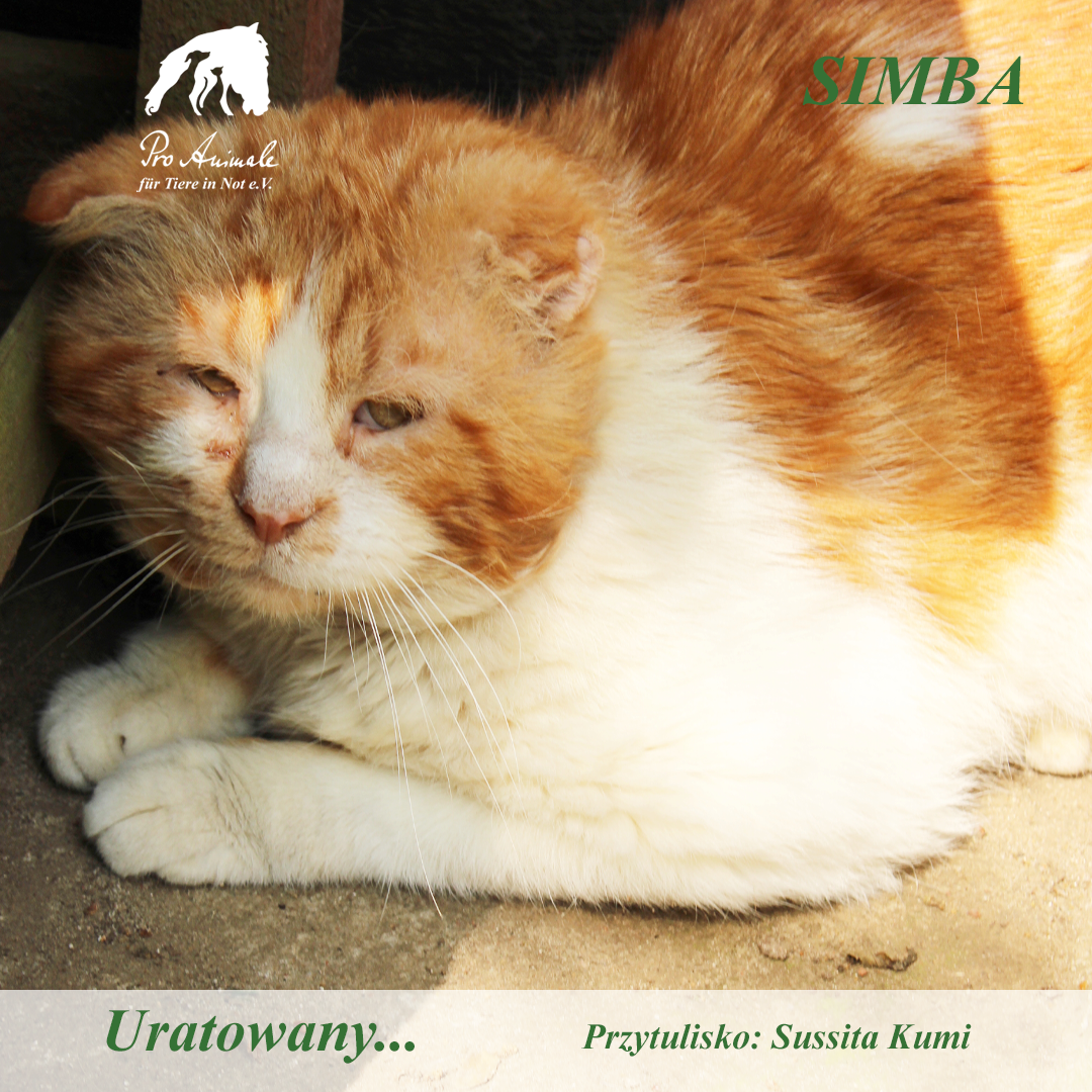 mieszkał wcześniej z oddaną prywatną aktywistką na rzecz praw zwierząt. Jednak potem wynik testu na FiV okazał się pozytywny. To odkrycie nie oznacza końca, ale wymaga specjalnych warunków. Izolacja nie była możliwa dla aktywistki. Dlatego zwróciła się do nas z pilną prośbą o przejęcie opieki nad Simbą. Oczywiście powiedzieliśmy „tak” – i teraz Simba jest częścią naszego małego, wyjątkowego świata w Sussita Kumi, gdzie również koty pozytywne na FiV znajdują kochający dom.